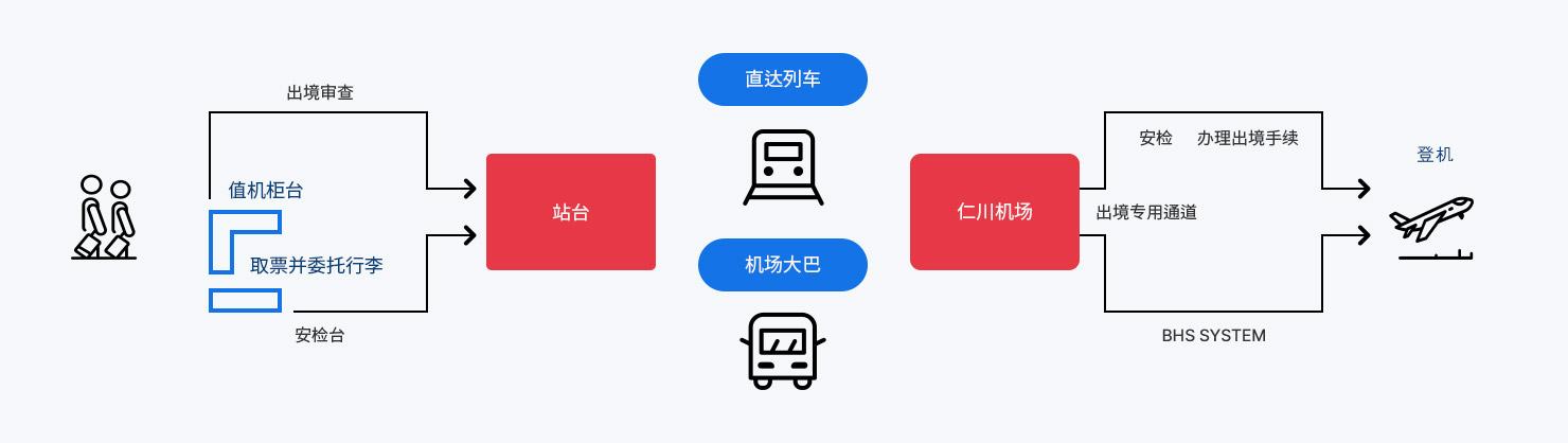 | 出境审查 | 05:30 ~ 19:00 | 光明站出境审查与仁川国际机场出境审查实现一体化 (航空手续及行李托运不受影响) |