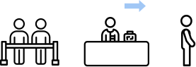 STEP 01请在等候线外等候。在出境审查台前按顺序等候。