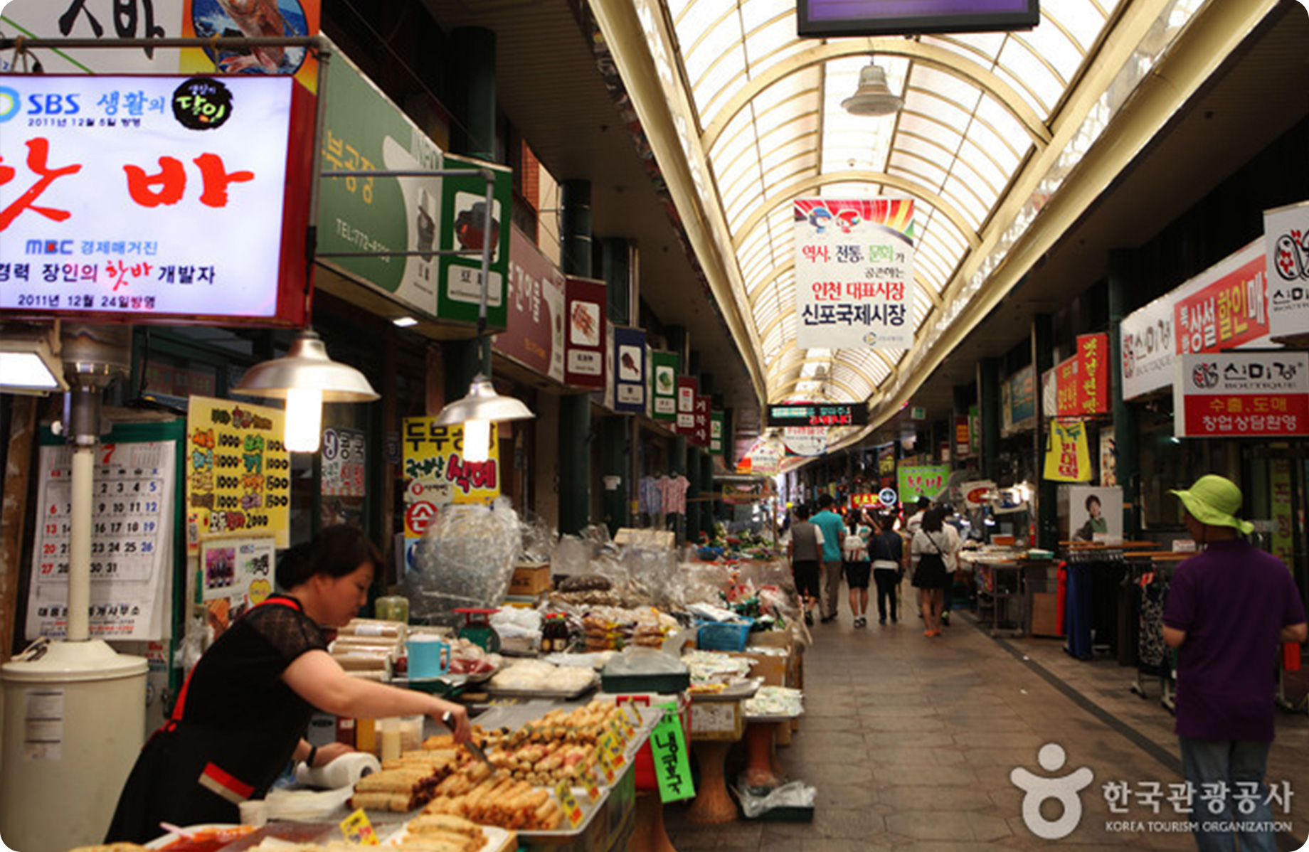 新浦市场形成于19世纪末,最初是向周边居民出售食品,此后逐渐形成市场。如今,这里最有名的是以油炸鸡裹上辣味调料的"新浦甜辣鸡块"。