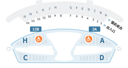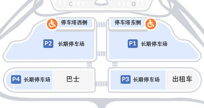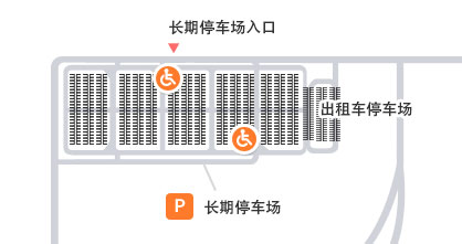 残疾人停车区域根据机场内的柜台位置,在较近的短期停车场中设置残疾人停车区域。