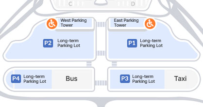 Disabled Parking ZonesParking zones for the disabled are available in short-term parking lots near the terminal counters.