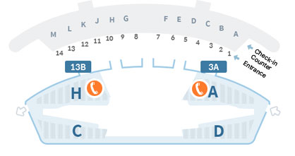 Help Phone ServiceBy picking up the receiver, a direct hotline will connect you to the nearest information desk inside the terminal for assistance.