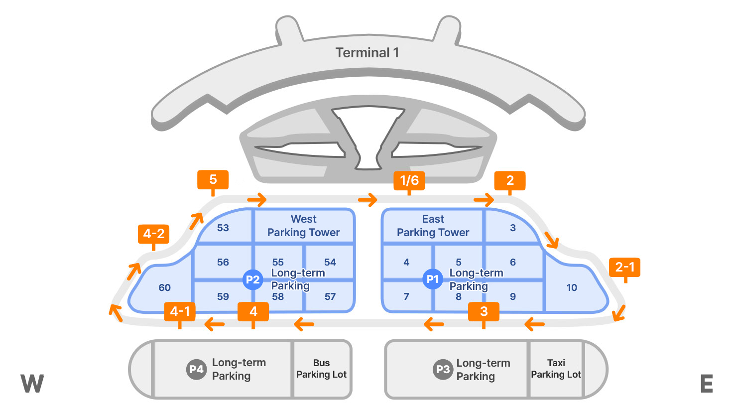 P5 Reserved Parking users, please use Airport Bus Route 03 or 04.