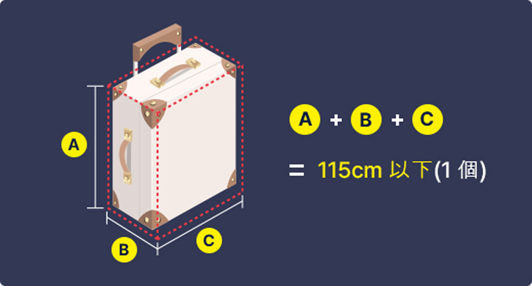 - 航空機の安全運航のため、機内に持ち込めるお荷物の大きさを制限しています。