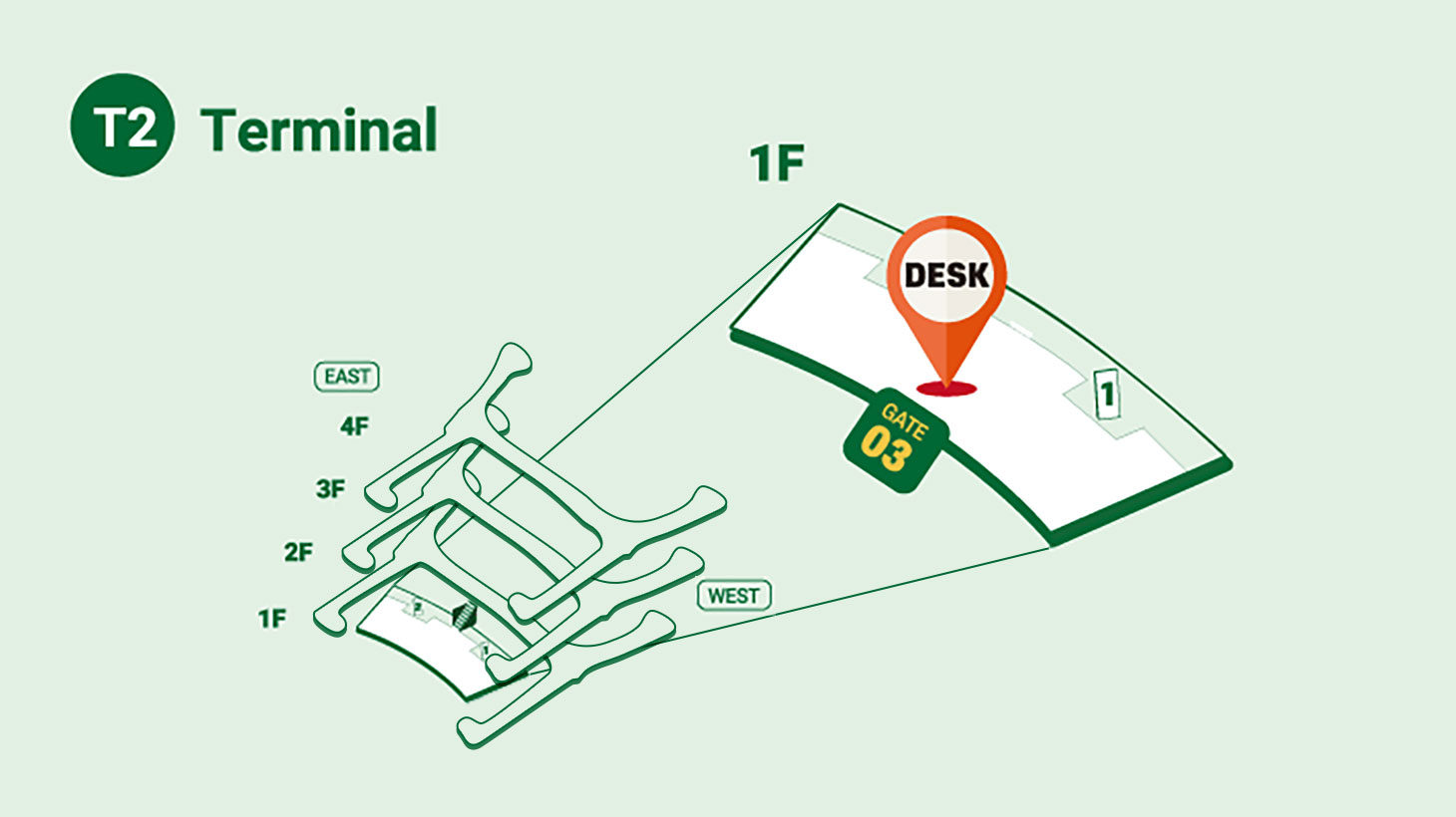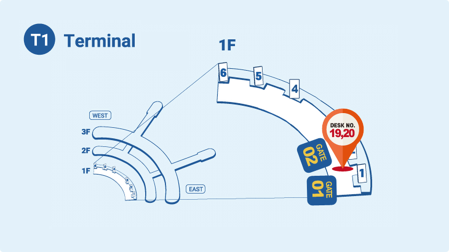 - 仁川空港に到着した後、出入国審査カウンターを通過し、1階の登録カウンターまでお越しください。