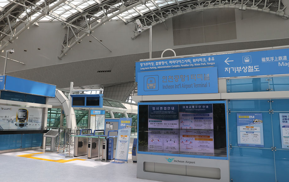 - 出発駅(仁川国際空港1ターミナル駅)位置 : 仁川空港第1旅客ターミナル交通センター2階