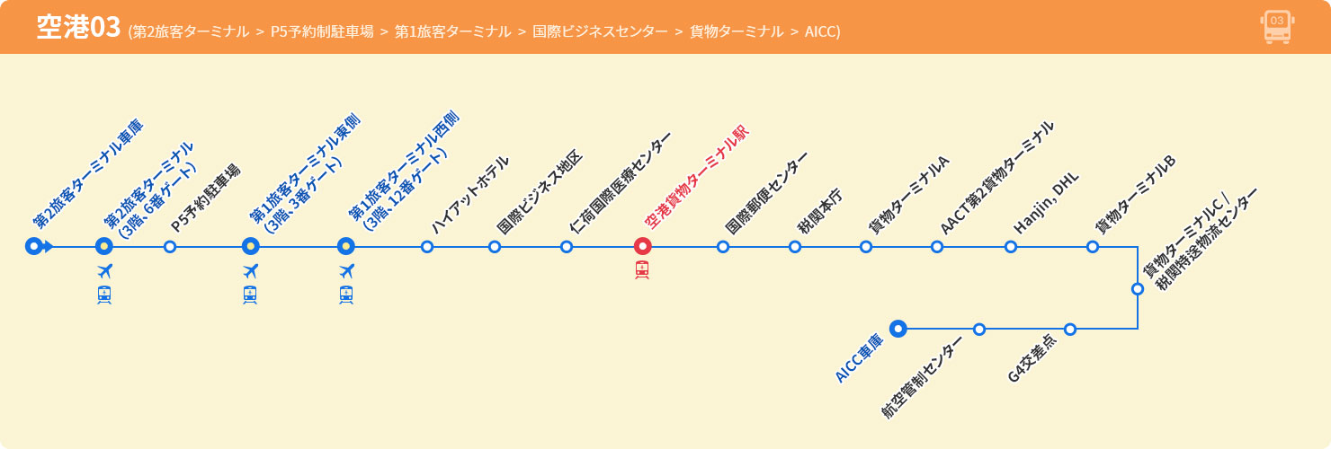 - 第1旅客ターミナル3階3番、12番ゲート前乗り場で乗車