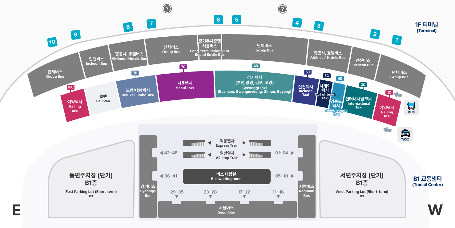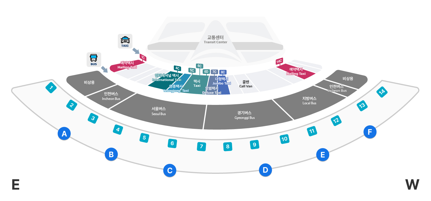 | 터미널 | 구분 | 서울 방면 | 인천 방면 | 경기 방면 | 시계 외 | 모범 택시 | 대형 택시 |
