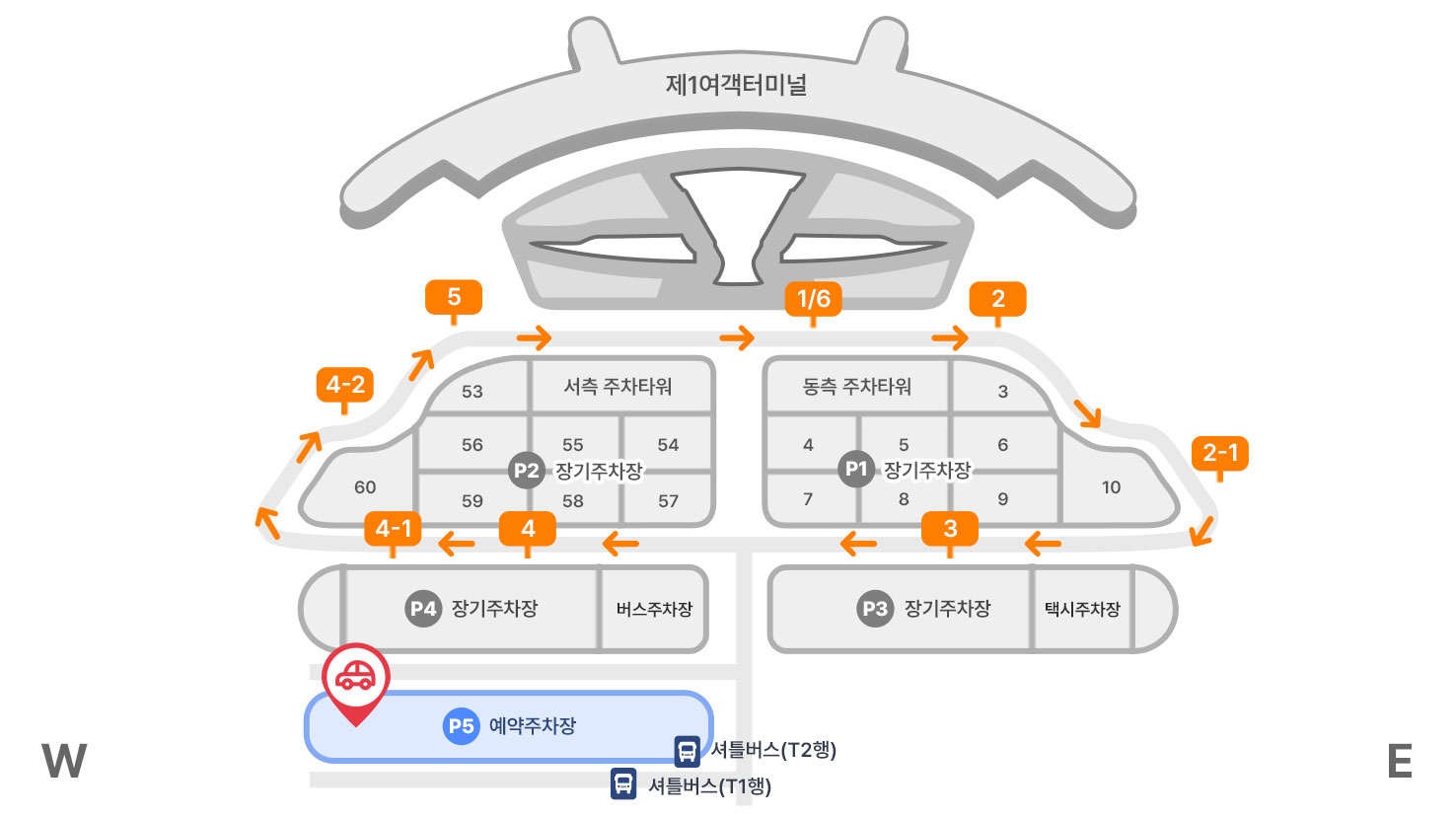 | 위치 | 제1 여객터미널 예약주차장 126번 구역 | 제2여객터미널 예약주차장 A111구역 | ||