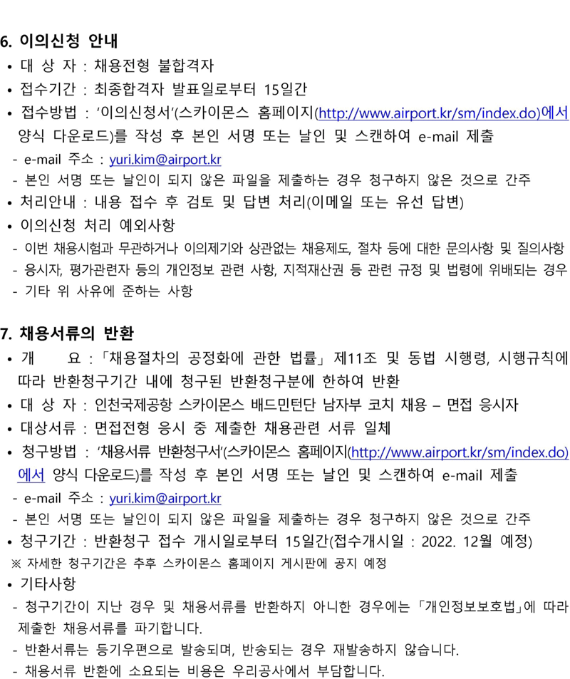 2022년 인천국제공항 스카이몬스 배드민턴단 코치 및 물리치료사 채용 이의신청 안내