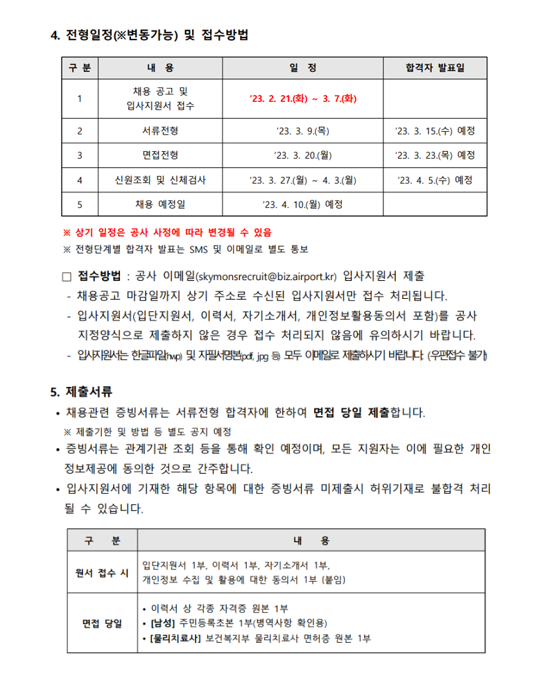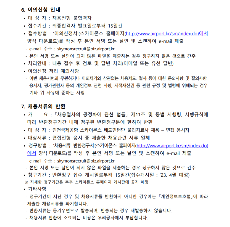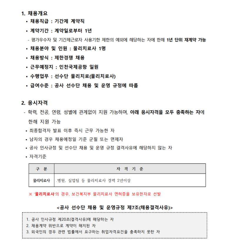인천국제공항 스카이몬스 배드민턴단 물리치료사 채용 이의신청 안내