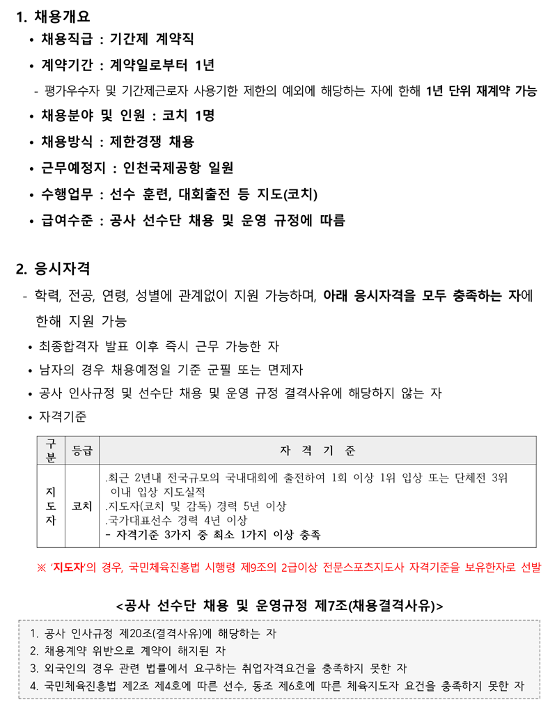 인천국제공항 스카이몬스 배드민턴단 코치 채용 공고