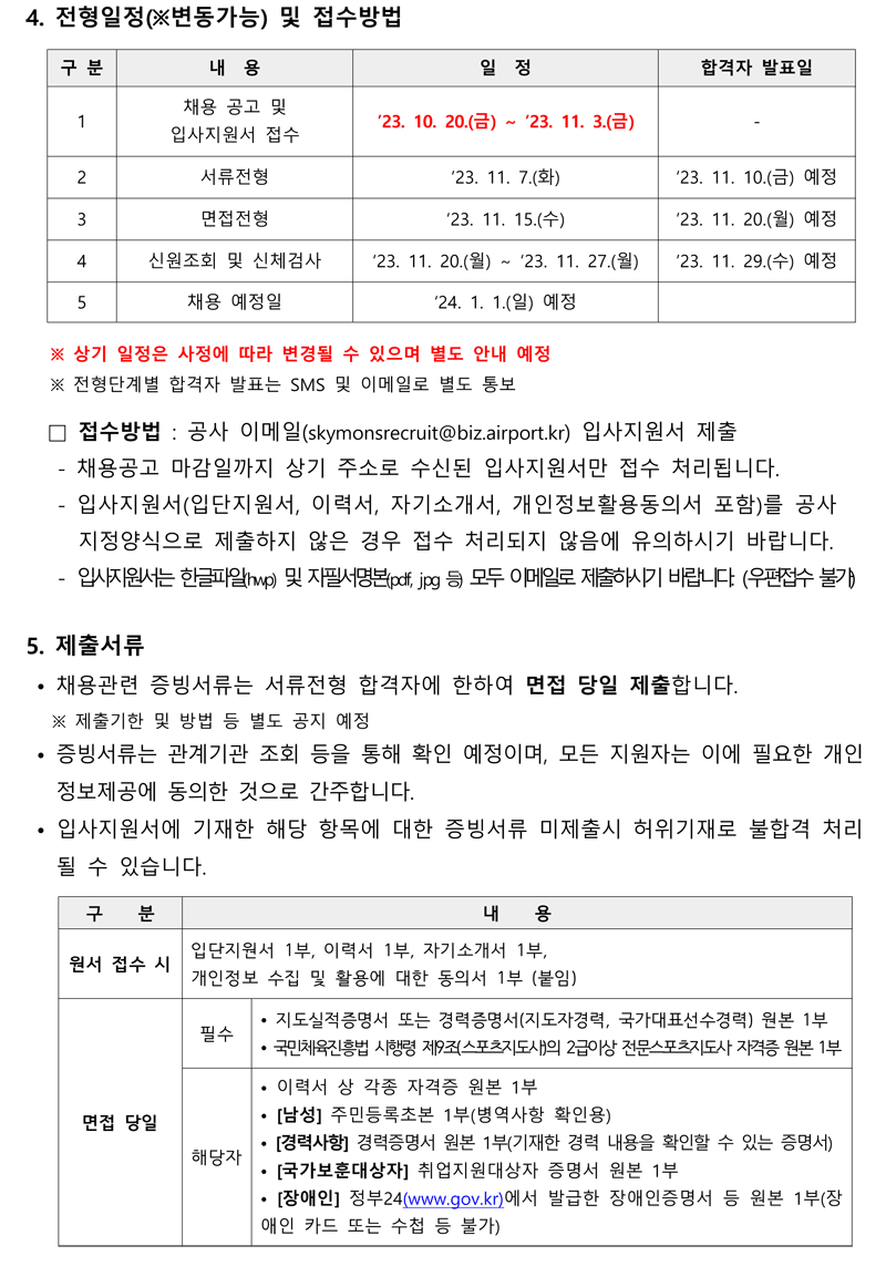 인천국제공항 스카이몬스 배드민턴단 물리치료사 채용 채용서류 반환 안내