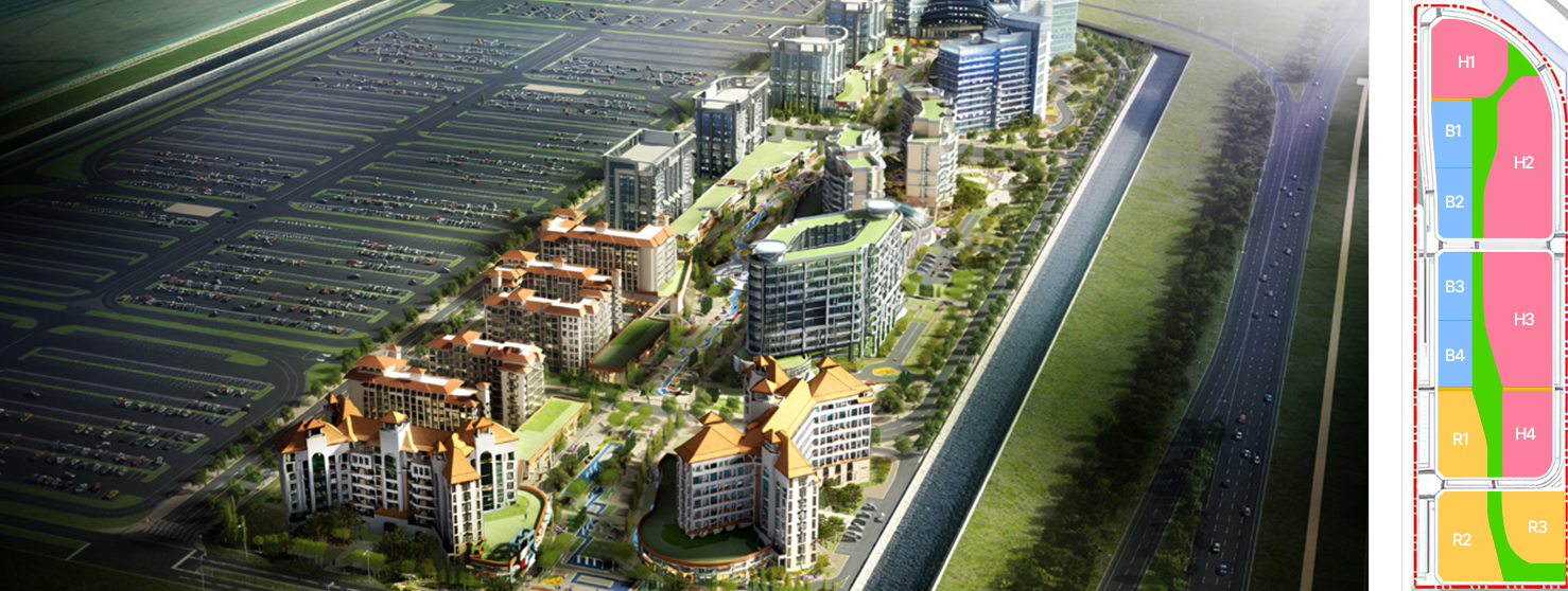 设施 : 商住两用房4栋、 医疗中心、君悦酒店、 贝斯特韦斯特酒店等