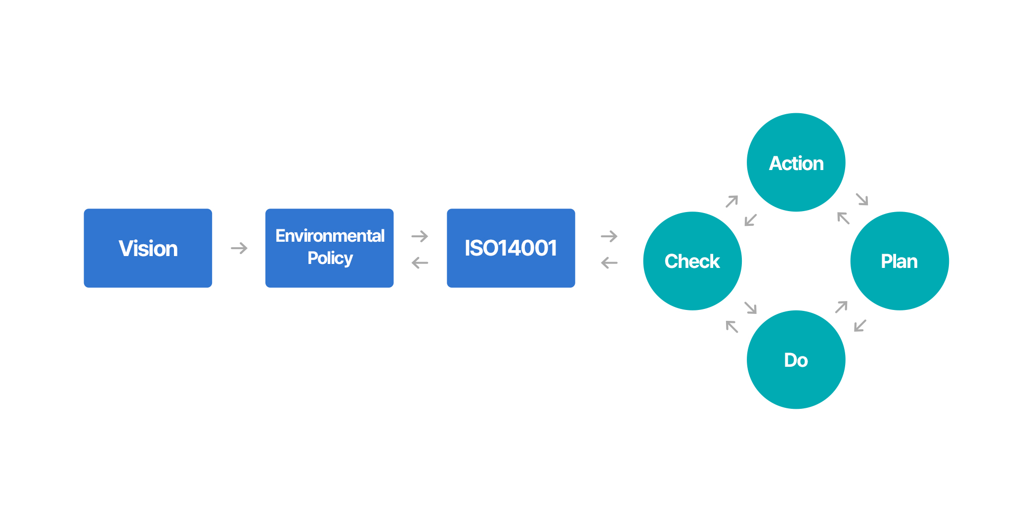 - The Environmental Management System is a management system where the business entity evaluates the environmental impact of all its activities, sets specific environmental goals, and continuously implements the PDCA (Plan, Do, Check, Act) cycle to improve the environment.