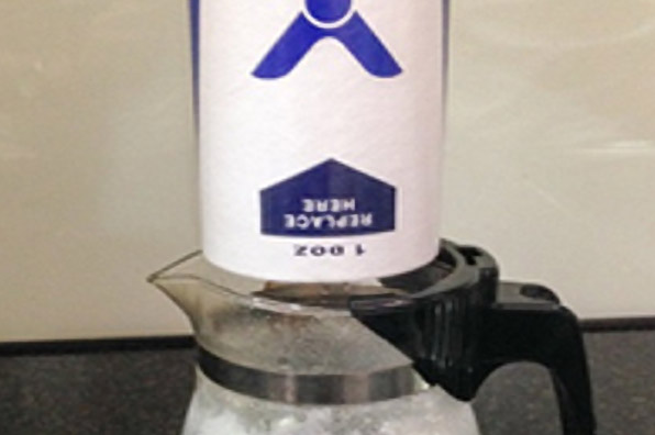 - 3통의 앞 뒤 뚜껑을 제거하고 입구를 주전자/보온병에 올려 놓고 30초 동안 증기가 입구로 들어가게 합니다.
